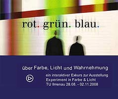 grün. blau - Experiment in Farbe & Licht Veranstalter: TU Ilmenau, Kurator: Dr. Konrad Scheurmann, 28.08. - 31.12.2008 www.ausstellung-rot-gruen-blau.de Im Rahmen der Ausstellung „rot. grün. blau. Experiment in